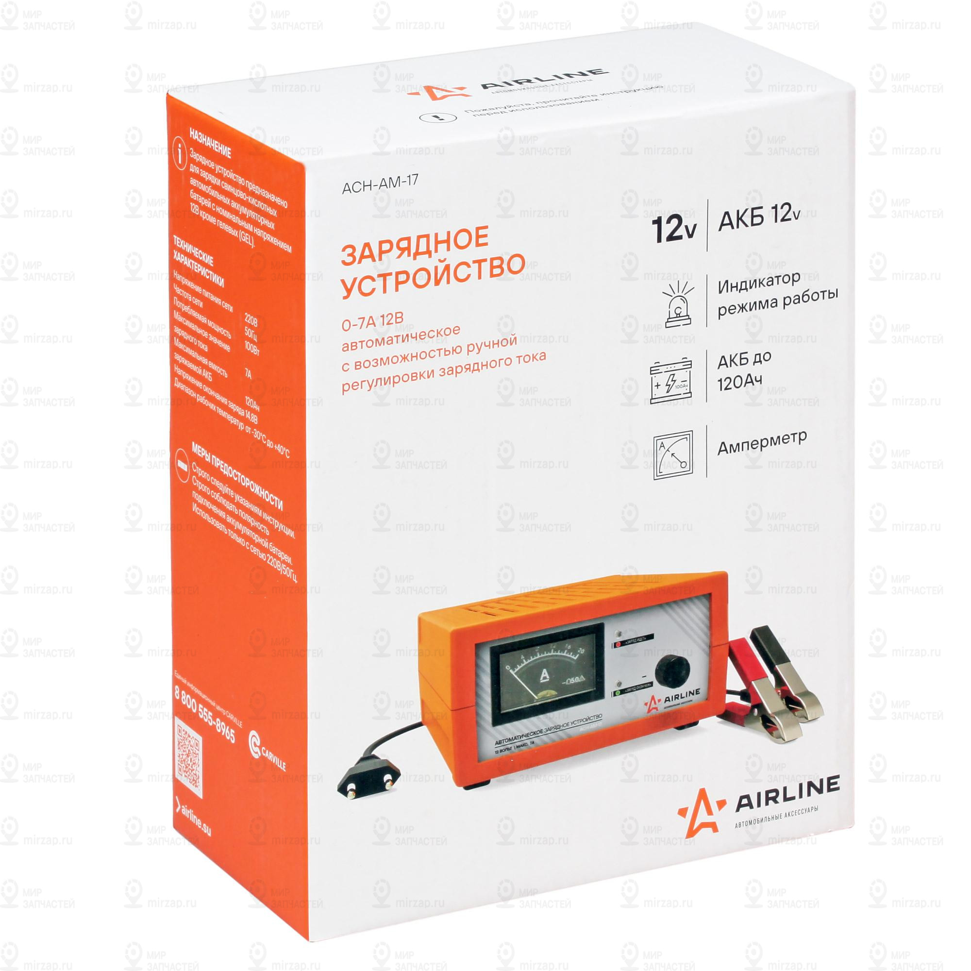 Зарядное Устройство 0-7А 12В, Амперметр, Ручная Регулировка Зарядного Тока, Импу AIRLINE ACHAM17