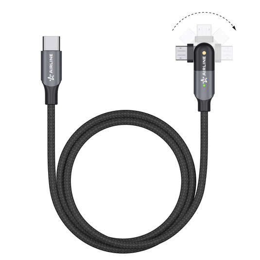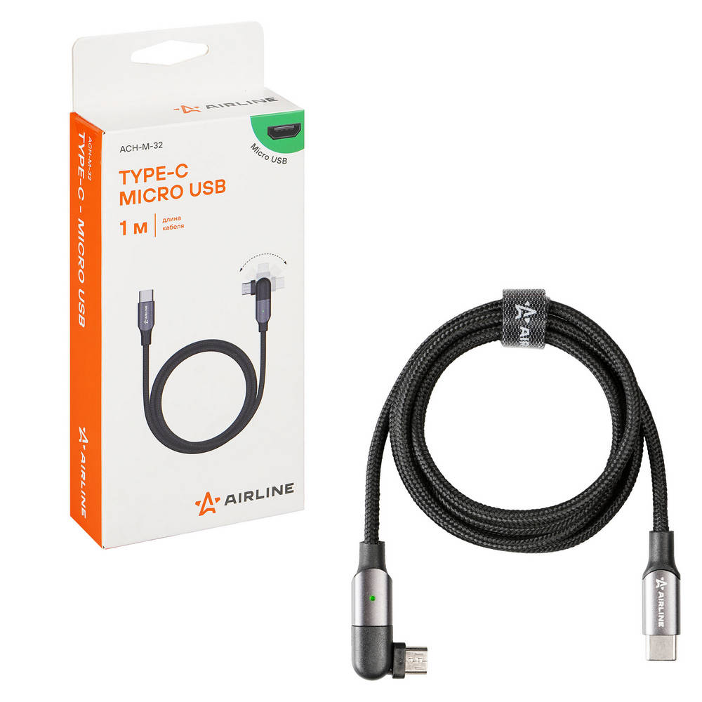 Кабель Type C - Microusb 1М, С Поворот. Коннектором, Черный Нейлоновый (Ach-M-3 AirLine ACHM32