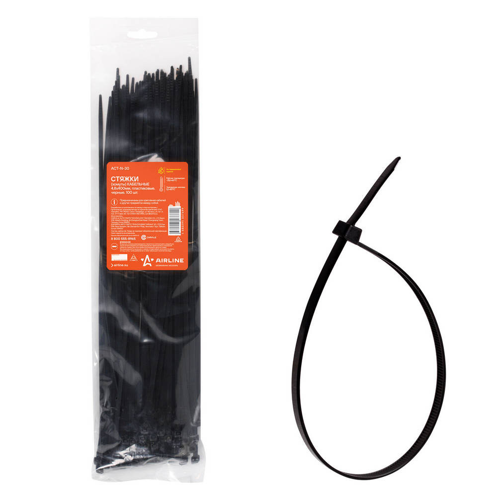 Стяжки (Хомуты) Кабельные 4,8400 Мм, Пластиковые, Черные, 100 Шт. AirLine ACTN30