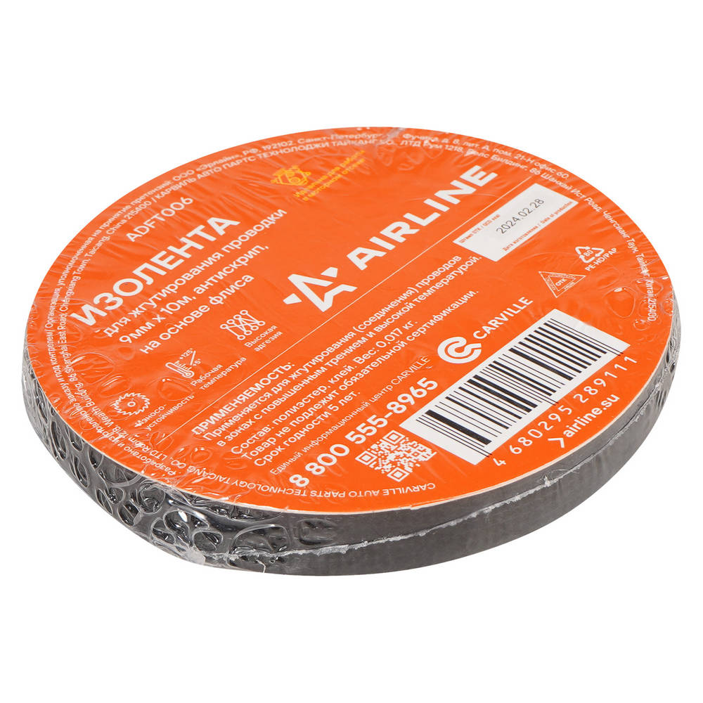 Изолента Для Жгутирования Проводки 9 Мм10 М, Антискрип, На Осн. Флиса (Adft006) AirLine ADFT006