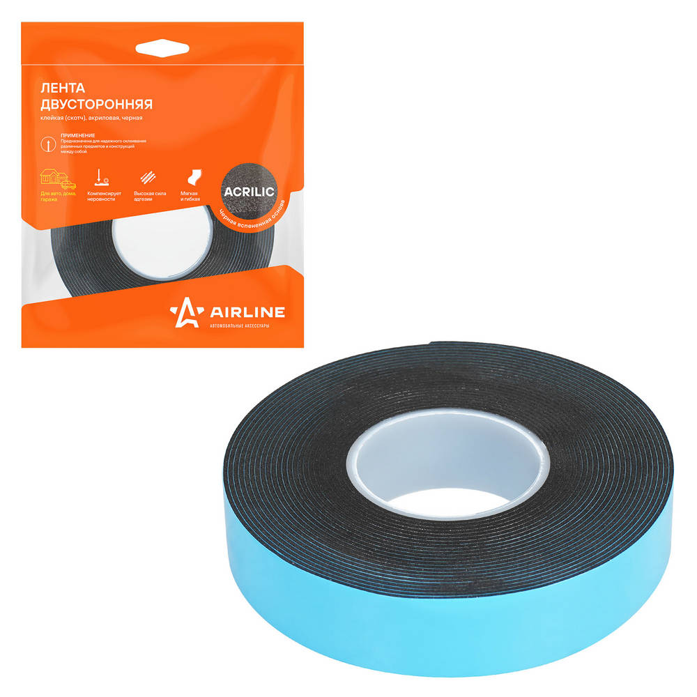 Лента Двусторонняя Клейкая (Скотч), 20Мм*5М, Акриловая Вспененная Основа, Черна AirLine ADSA011