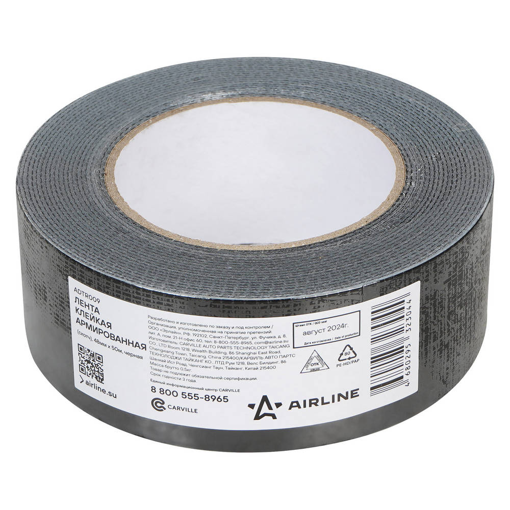 Лента Клейкая Армированная (Скотч), 48Мм*50М, Черная (Adtr009) AirLine ADTR009