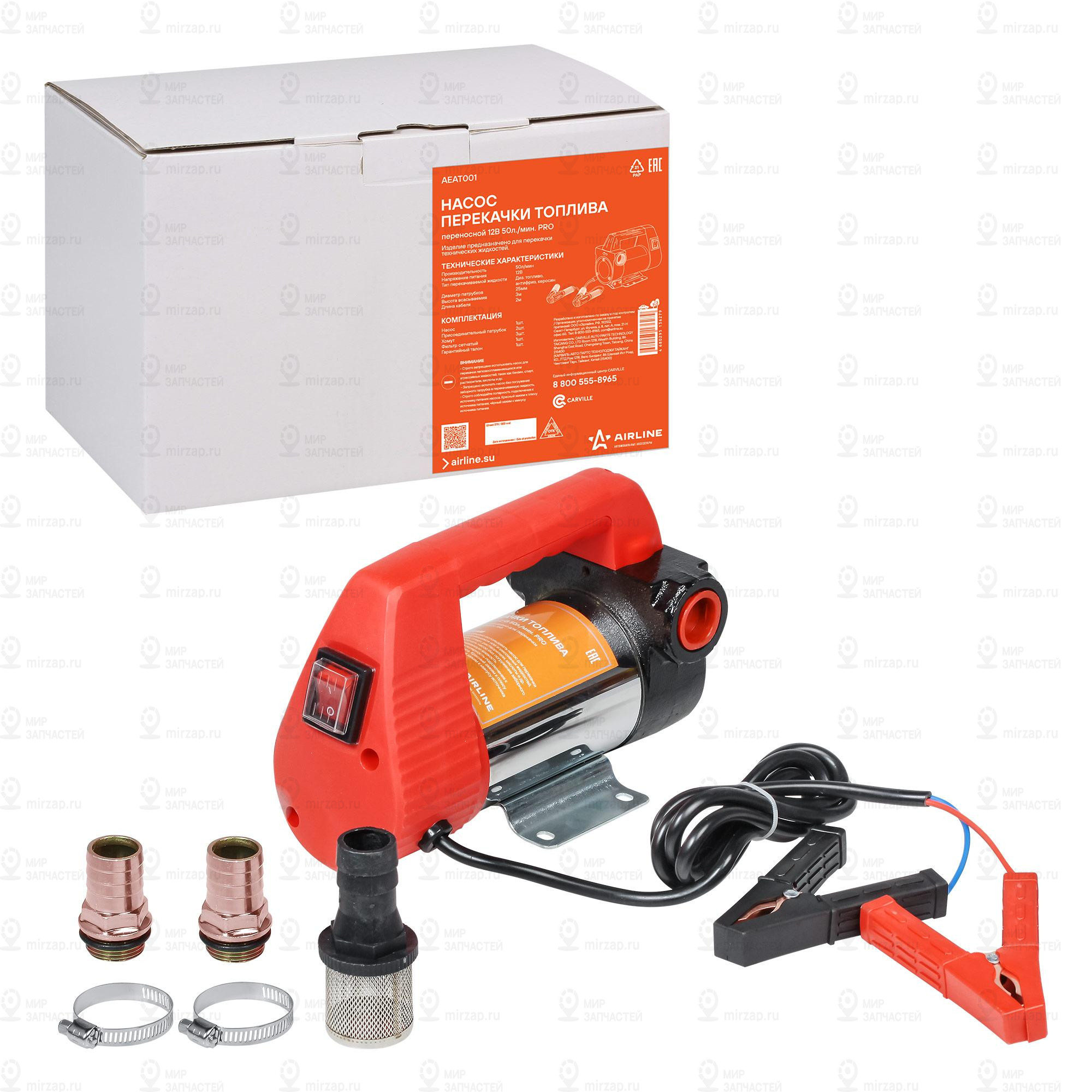 Насос Перекачки Топлива Переносной 12В 50Л/Мин Pro (Aeat001) AIRLINE AEAT001