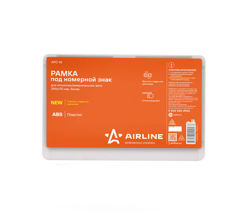 Рамка Под Номерной Знак Для Япон./Амер. Авто, 290Х170 Мм, Белая AirLine AFC16