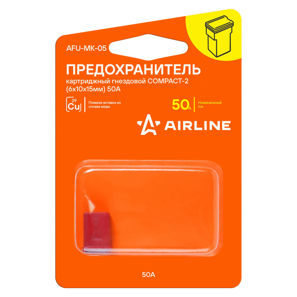 Предохранитель Картриджный Гнездовой Compact-2 (6.2X9.7x15мм) 50А В Блистере 1Шт AirLine AFUMK05