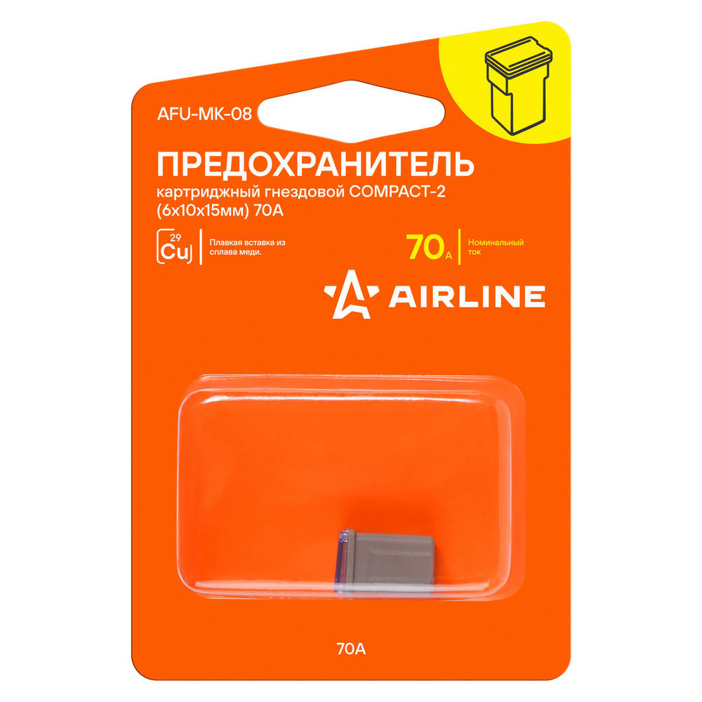 Предохранитель Картриджный Гнездовой Compact-2 (6.2X9.7x15мм) 70А В Блистере 1Шт AirLine AFUMK08