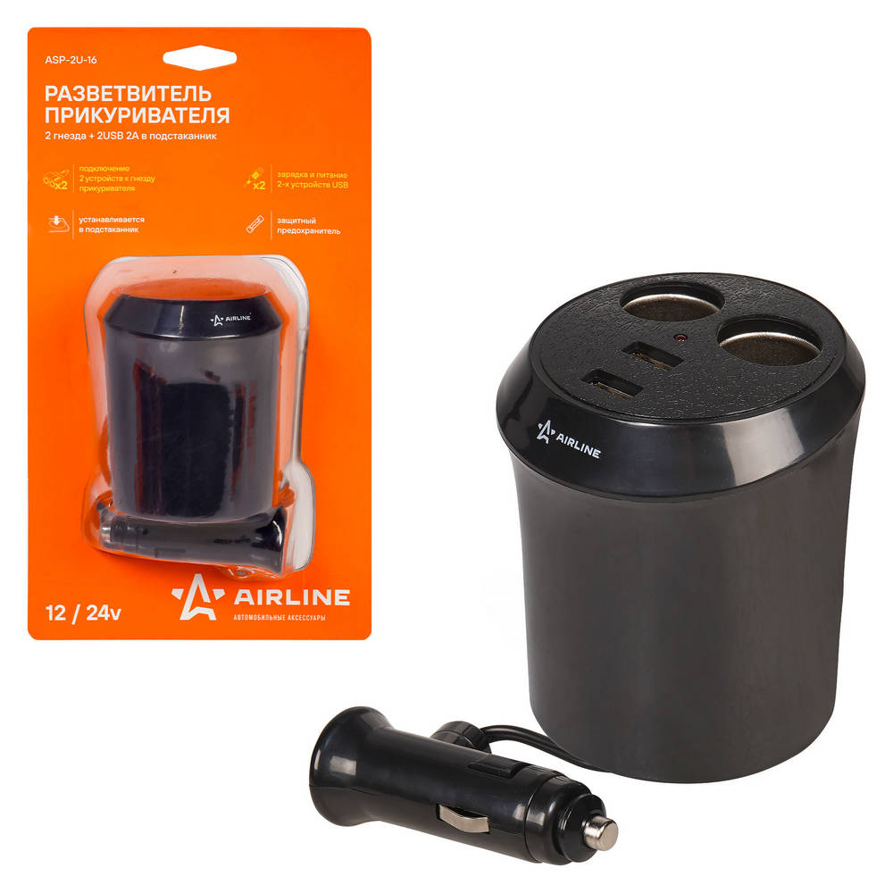 Прикуриватель-Разветвитель AirLine ASP2U16