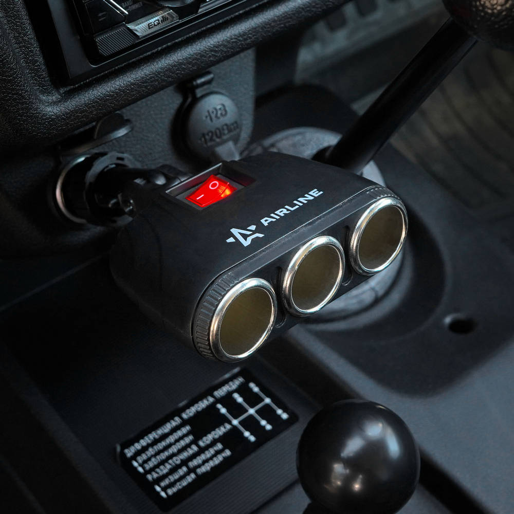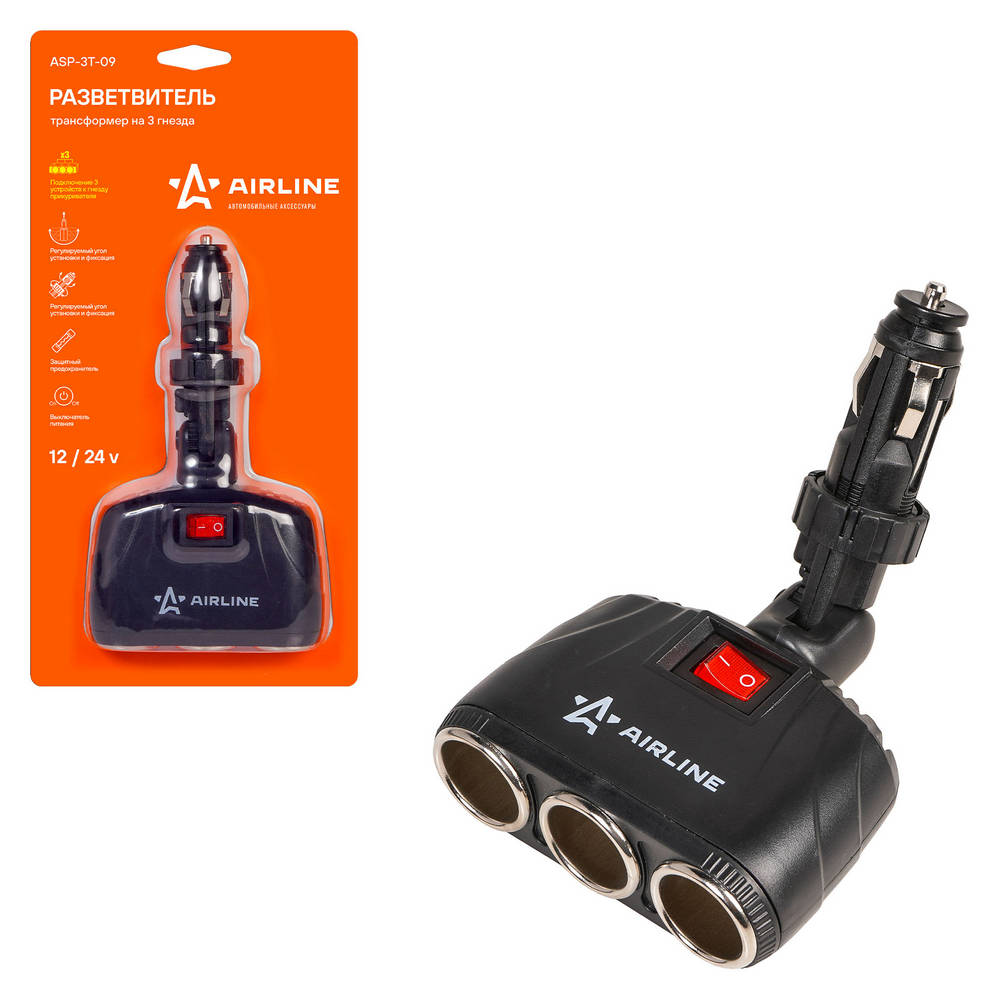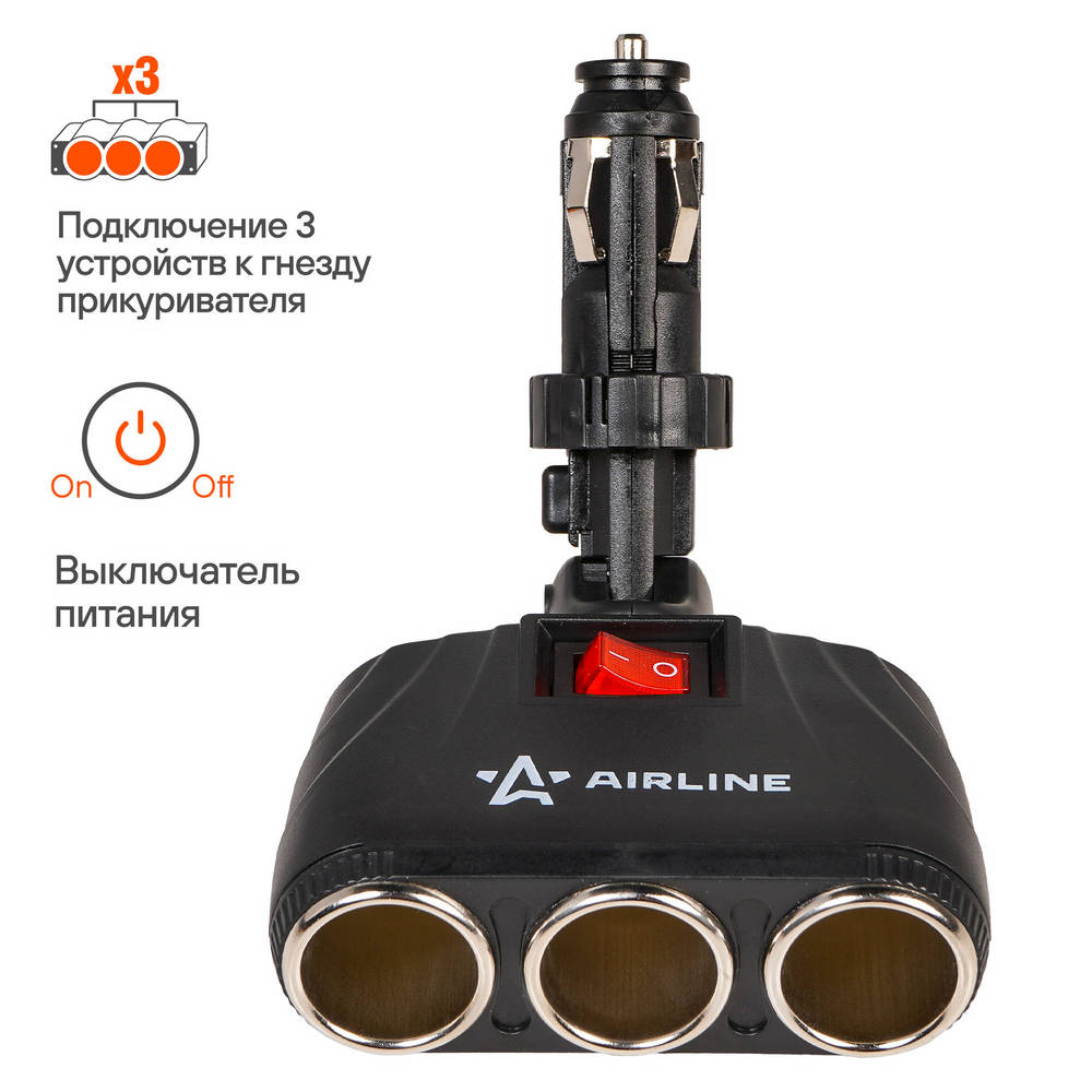 Прикуриватель-Разветвитель Трансформер На 3 Гнезда AirLine ASP3T09