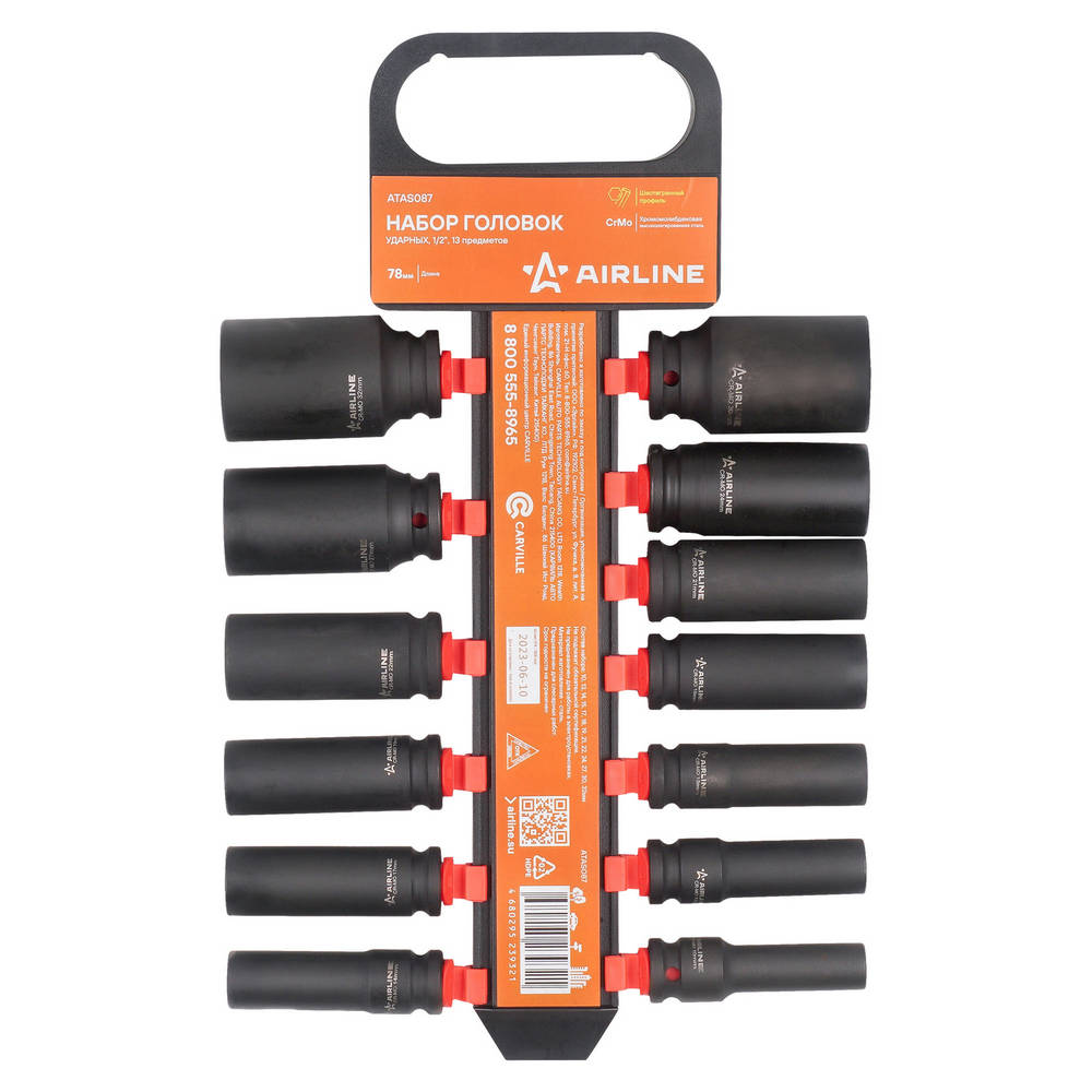 Набор Головок Ударных Удлиненных 1/2 78Мм 13 Пр. (10-32Мм) Пласт. Подвес (Atas08 AirLine ATAS087