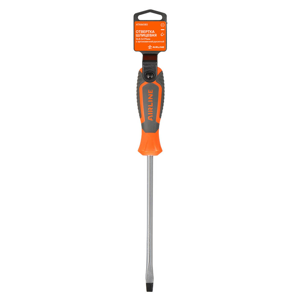 Отвертка Шлицевая Sl8.0x175 С Эргономичной Рукояткой Магнитная, Пласт.подвес (At AirLine ATAW080