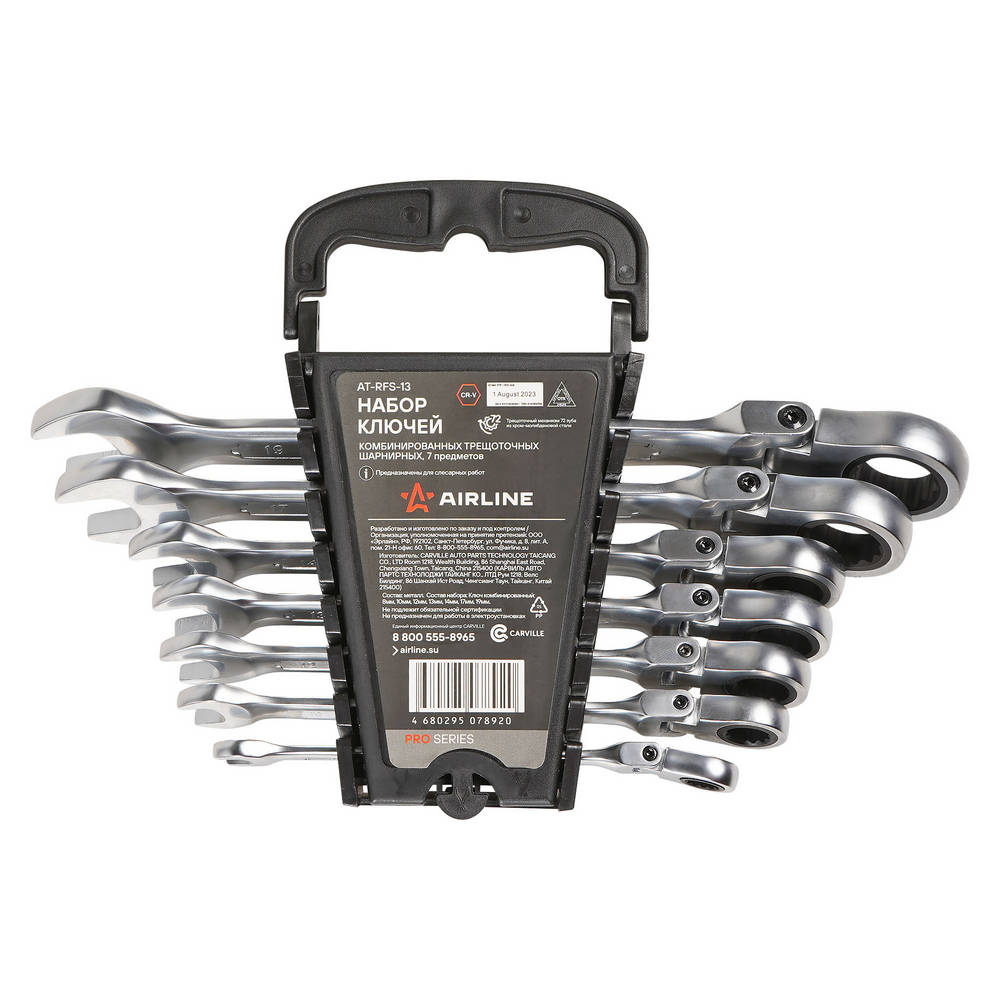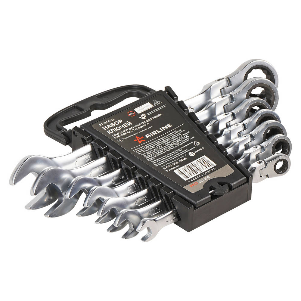 Набор Ключей Комбин. Трещот. Шарнирных 7Предм. (8,10,12,13,14,17,19Мм) AirLine ATRFS13
