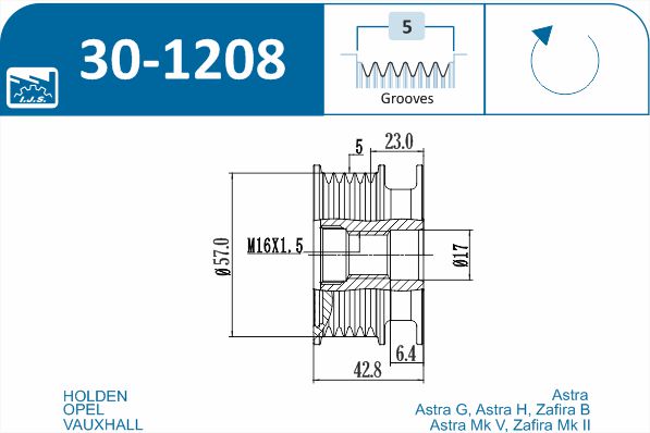 Шкив Генератора Opel: Astra H IJS 301208