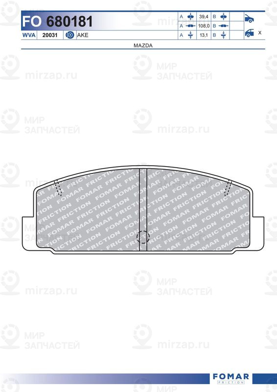 Комплект тормозных колодок, дисковый тормоз