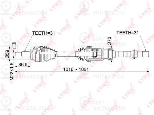 Шарнирный комплект, приводной вал