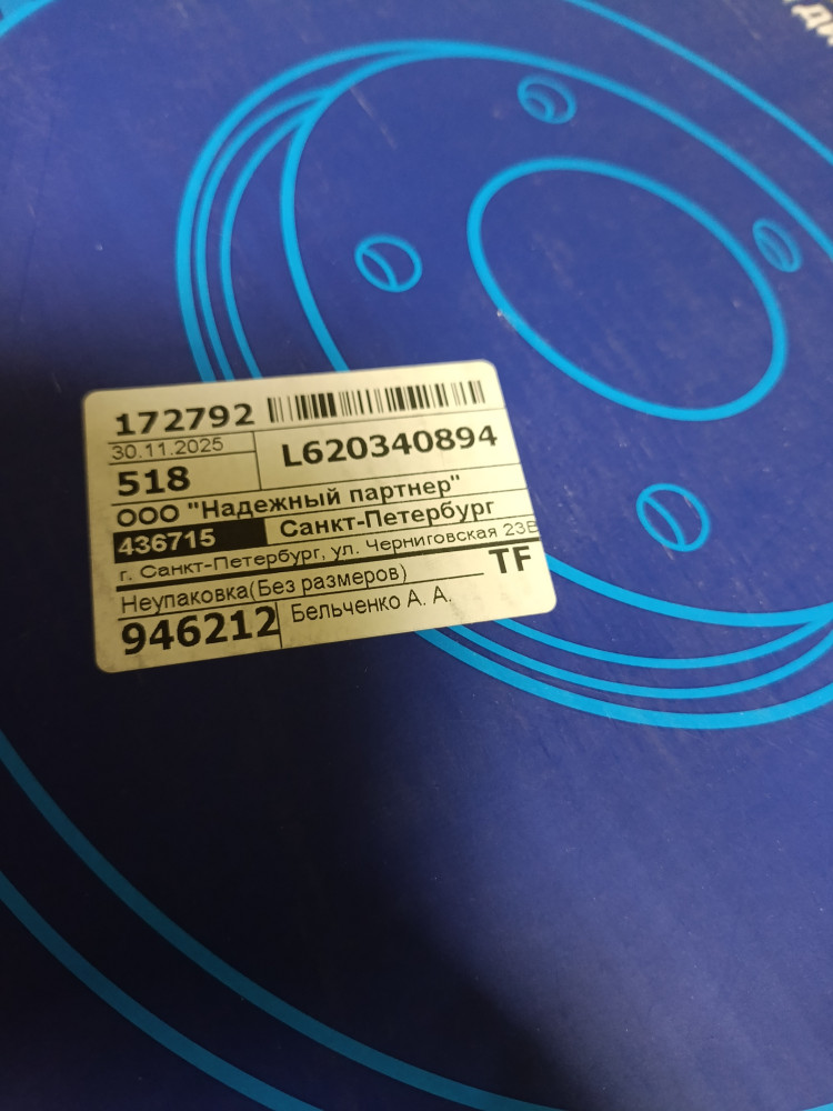 Толщина тормозного диска (мм)18,4
