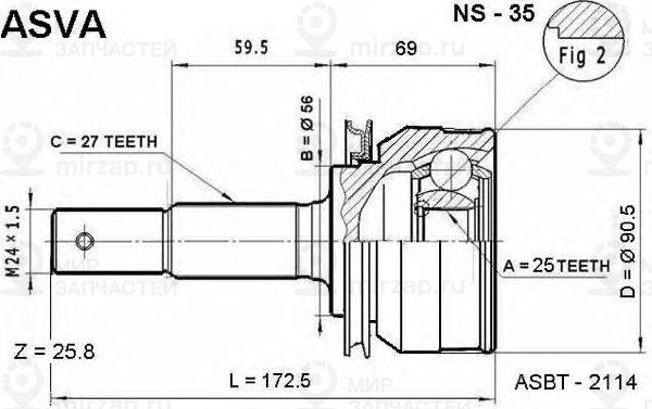 Шрус Nissan Blubird U13 Sr18/20 91-95/Primera Camino P11 Sr20 97-01 Вариатор SAT NI35