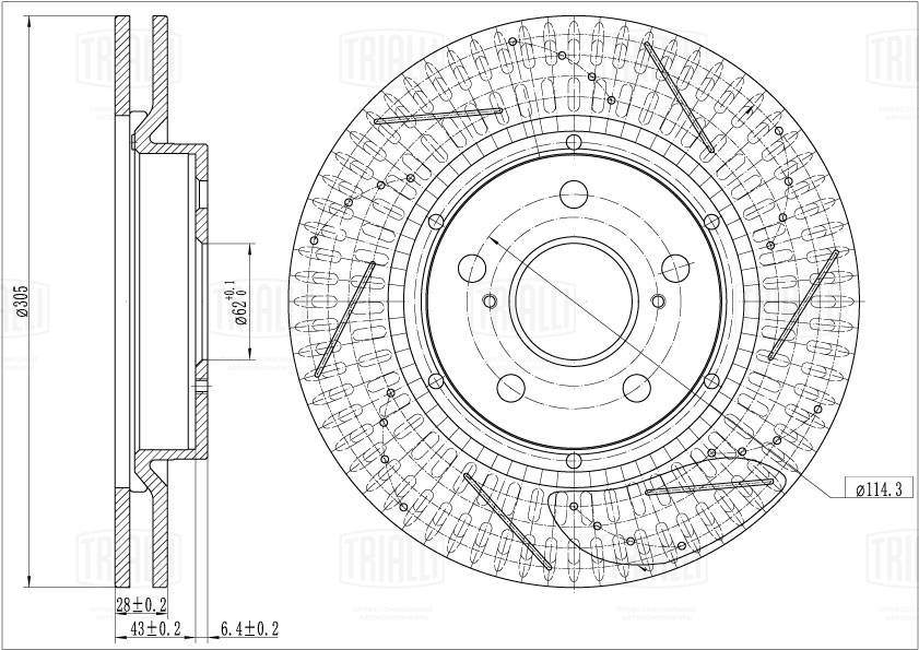 Диск Торм. Для А/М Toyota Camry (18-)/Rav 4 (18-) Перед. D=305 (Перф/Слот/Окраш) TRIALLI DF5200S