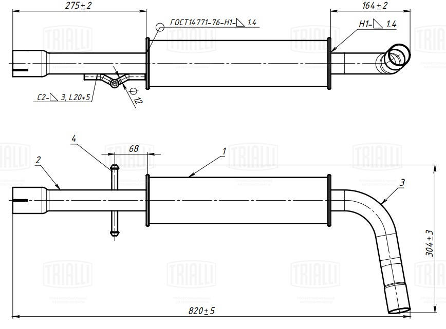 Длина глушителя (с трубами) [мм]820