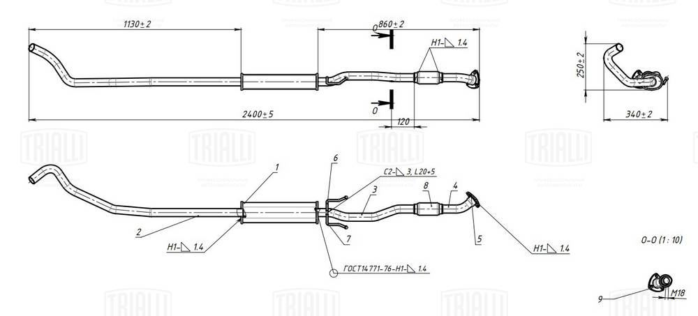 Длина глушителя (с трубами) [мм]2 400